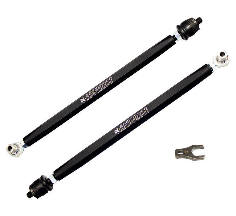 The kit comes complete with everything needed for installation both left and right sides. Kryptonite Steering and Suspension heavy duty tie rods are a direct bolt on OEM replacement and do not require any modification for installation. Now you can have a brand you know and trust with the best warranty on the market on your side by side.