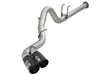This DPF-back exhaust system is constructed of 4" mandrel-bent 409 stainless steel tubing for maximum strength and durability. Finishing off this exhaust system are dual 5" diameter black 304 stainless steel intercooled clamp-on exhaust tips. The tips features an aFe POWER logo plate riveted on for a unique style. Some cutting may be required, see instruction sheet for further information. Utilizing a factory style flange and hangers this system mounts directly to factory mounting locations for a hassle-free installation. OE-style bayonet hangers are used to maintain a stable pipe location during high vibration and high heat conditions. The bayonet tip holds the hanger bushing in place for an OE-style fit that does not change with time. 100% MIG-Welded for race-proven strength and durability.