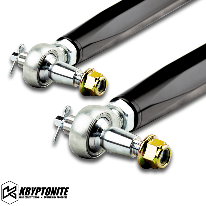 This specially designed hardware can be used to convert your factory spindle to receive a 5/8" Heim Joint. This hardware kit is a direct replacement for Kryptonite Tie Rods. Includes high misalignment spacers, perfect for all ranges of suspension travel.