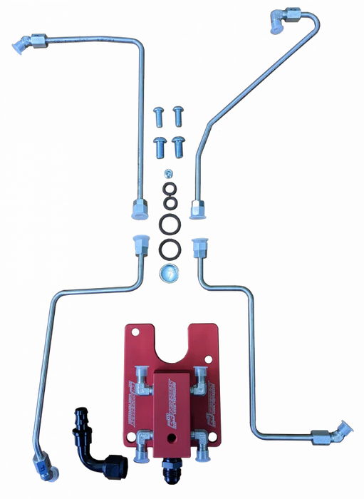 CUpgrade your 94.5-98.5 (OBS and Early 99) 7.3L Powerstroke fuel system with our 4-line feed fuel line kit from CNC Fabrication that is designed to eliminate many of the infamous leaks with the stock fuel bowl.