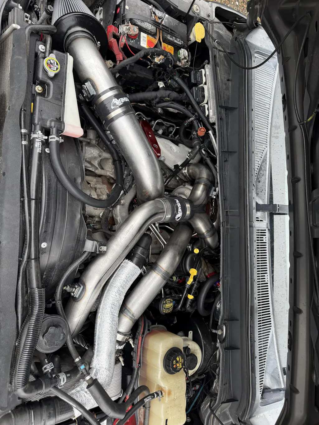 The Pusher Intake System for the 2011+ Ford F250/350 6.7L Powerstroke spent two years in research, design, and testing to obtain perfectly balanced air delivery and compatibility across numerous turbo configurations. Replaces the entire anemic factory intake manifold, plastic cold side charge tube and cold air intake assembly